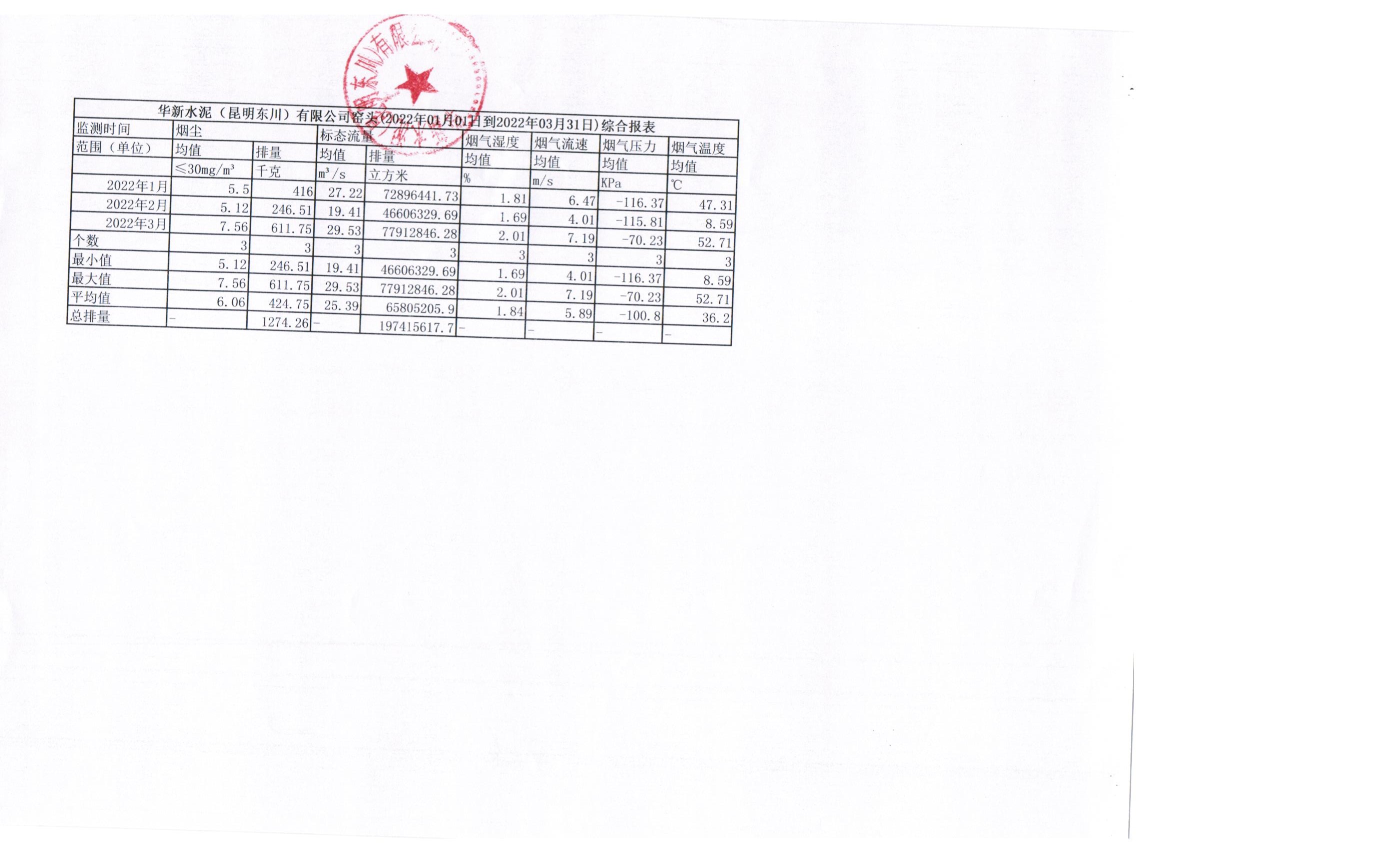 6、華新水泥(昆明東川)有限公司2022年第一季度環(huán)境自行委托監測